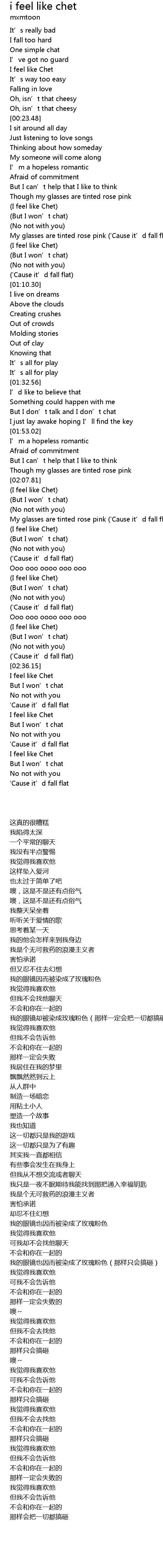 | [01:02.14] | My glasses are tinted rose pink ('Cause it’d fall flat) |