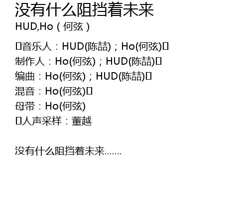 | 音乐人:HUD(陈喆);Ho(何弦) | |