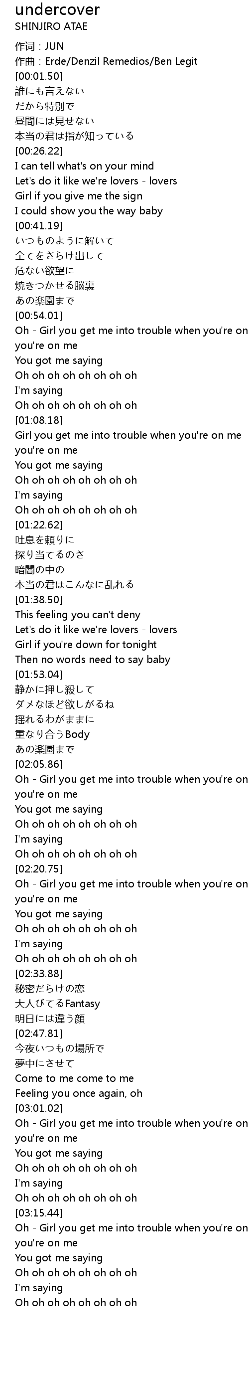 | [03:02.31] | Oh - Girl you get me into trouble when you're on me |