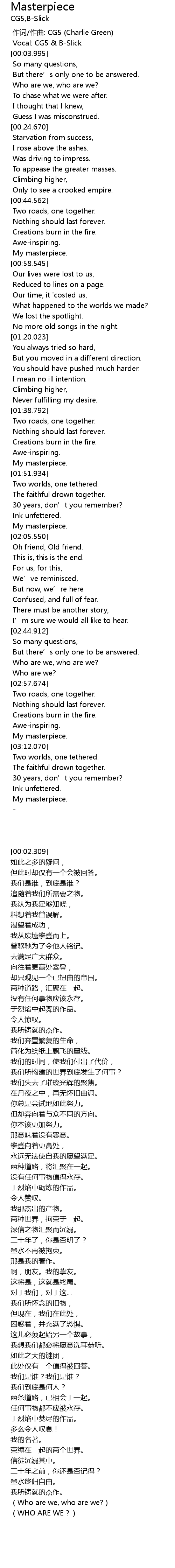 | [00:02.309] | Vocal: CG5 & B-Slick |