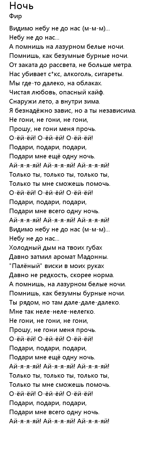 Ночь   Lyrics