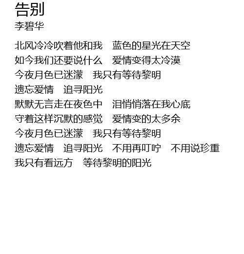 | 遗忘爱情 追寻阳光 不用再叮咛 不用说珍重 | |