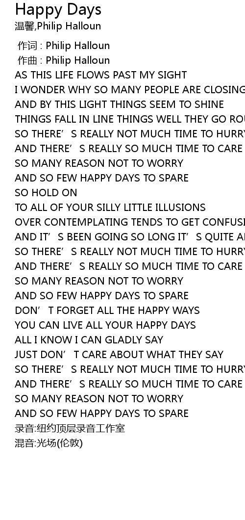 | [02:19.29] | YOU CAN LIVE ALL YOUR HAPPY DAYS |