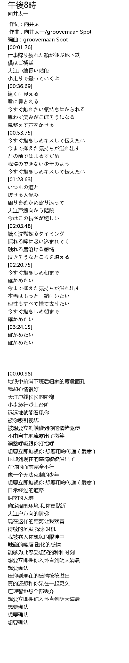 | [00:00.098] | 作曲 : 向井太一/groovemaan Spot |