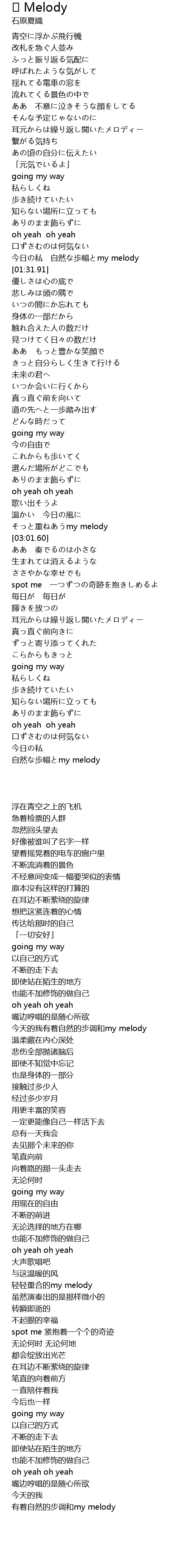 | [01:24.64] | 今日の私 自然な歩幅とmy melody |
