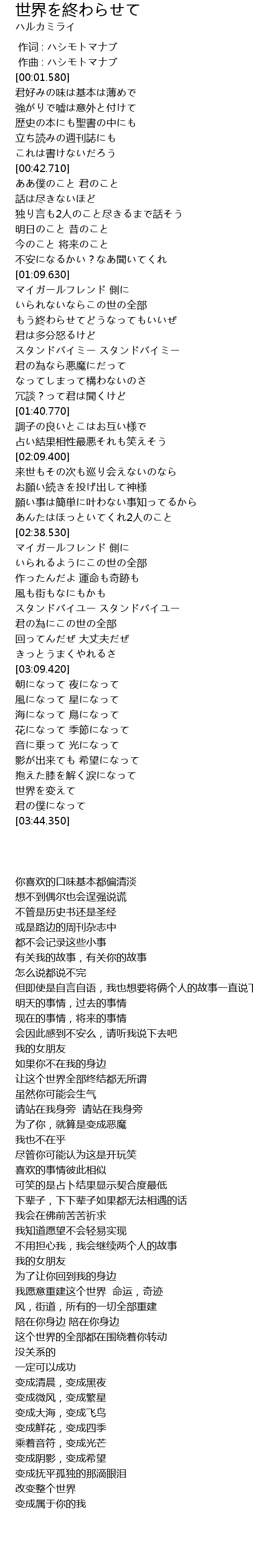 | [03:35.920] | shì jiè biàn |