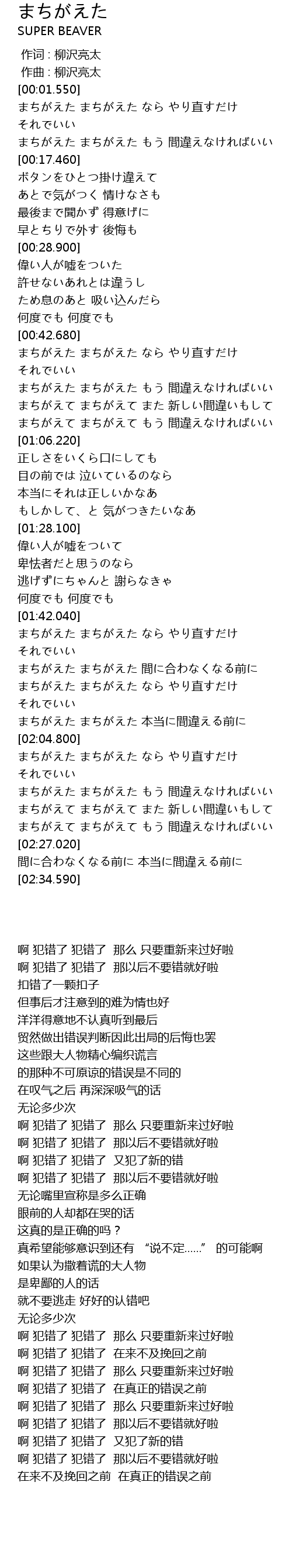 | [02:10.580] | まちがえた まちがえた もう 間違えなければいい |