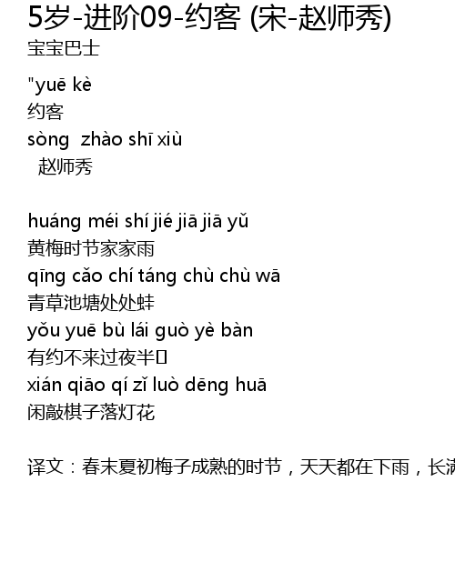 | Song | 5岁-进阶09-约客 (宋-赵师秀) |