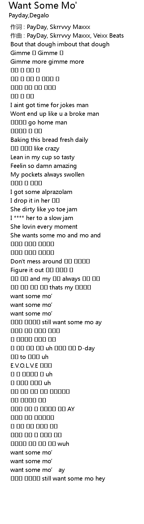 | [00:52.513] | She wants some mo and mo and |