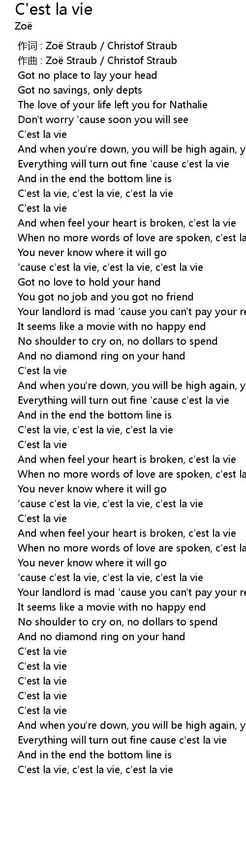 | [00:40.40] | And when feel your heart is broken, c'est la vie |
