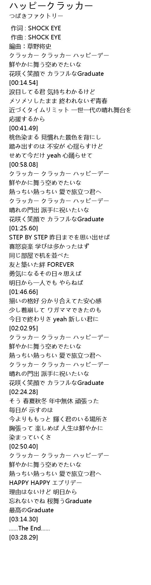 | [02:03.17] | クラッカー クラッカー ハッピーデー |