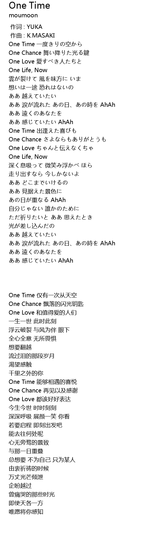 | [00:10.10] | One Time 一度きりの空から |
