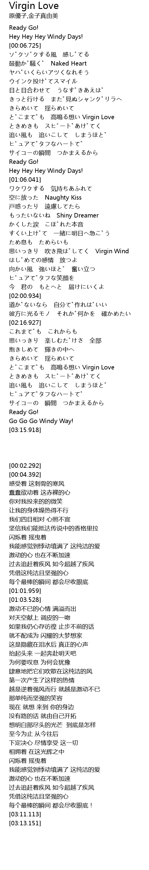 | [02:49.518] | どこまでも 高鳴る想い Virgin Love |