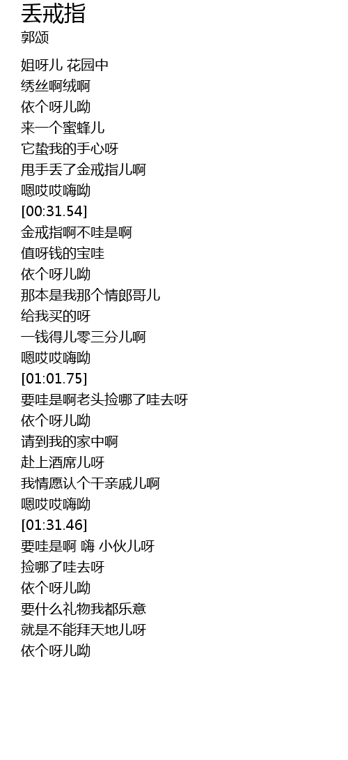 [00:39.34] 金戒指啊不哇是啊