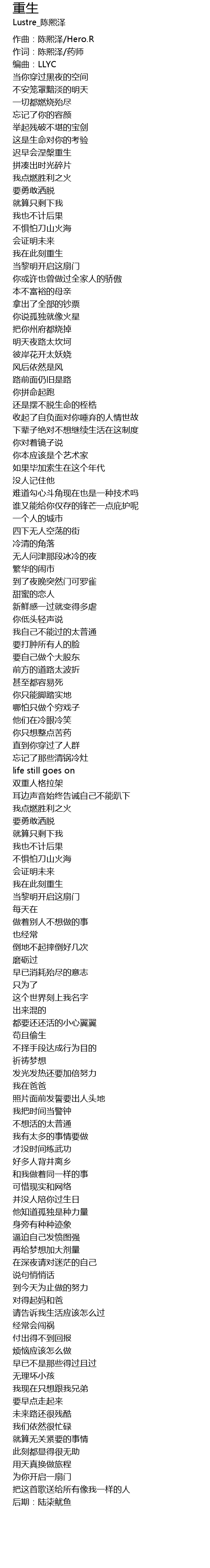 | Song | 重生 |
