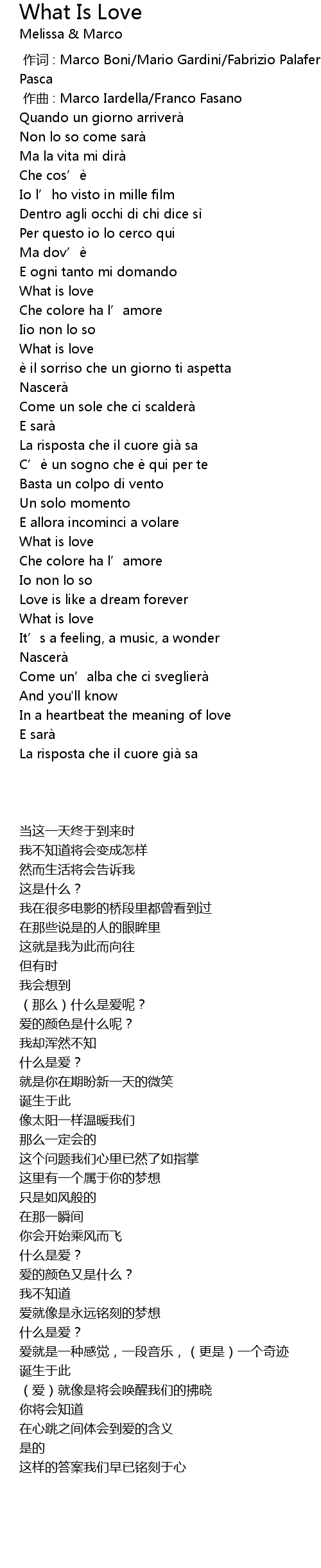 | [00:00.546] | 作词 : Marco Boni/Mario Gardini/Fabrizio Palaferri/Melissa Di Pasca |
