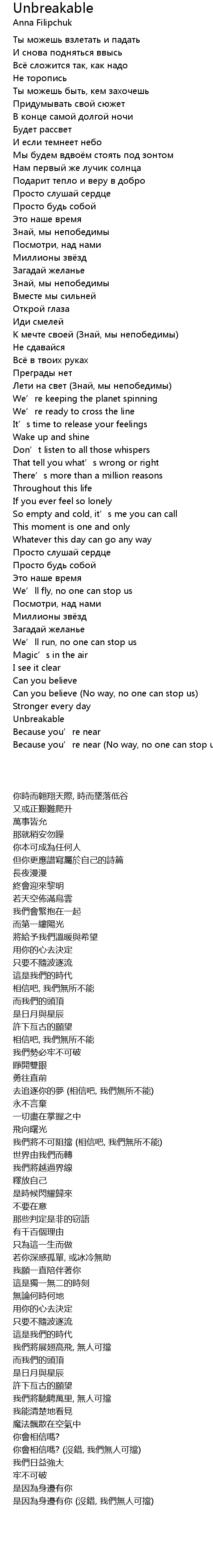 | [02:43.35] | Unbreakable |
