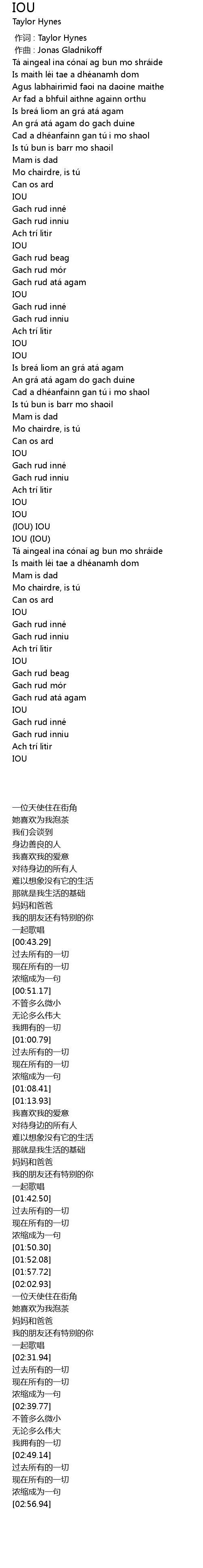 | [00:01.000] | zuò cí : Taylor Hynes |