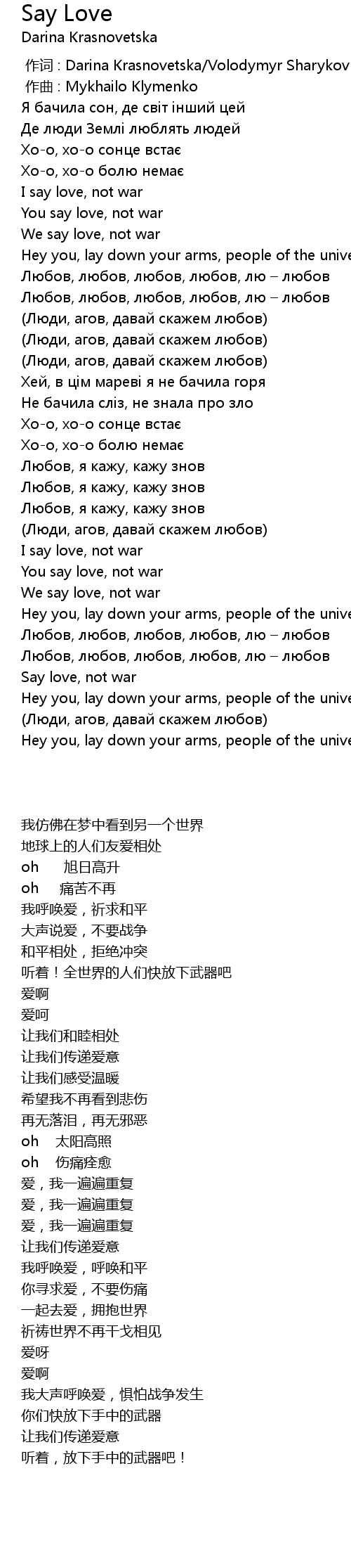 | [00:01.000] | 作词 : Darina Krasnovetska/Volodymyr Sharykov |