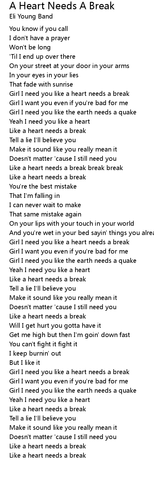 Like a heart needs a break break break |
