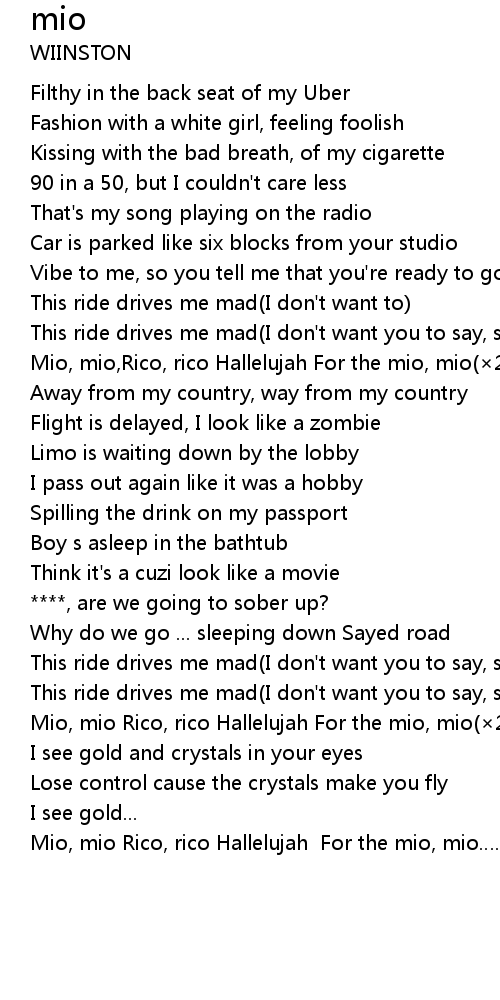 | [01:06.22] | Mio, mio, Rico, rico Hallelujah For the mio, mio 2 |