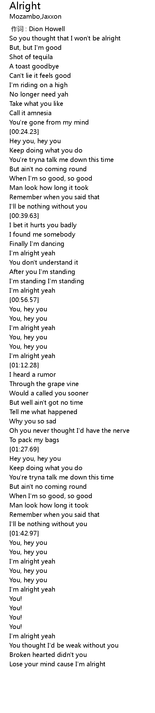 | [00:54.47] | I'm alright yeah |