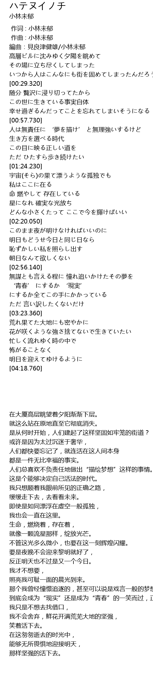 | [00:00.190] | 作词 : 小林未郁 |