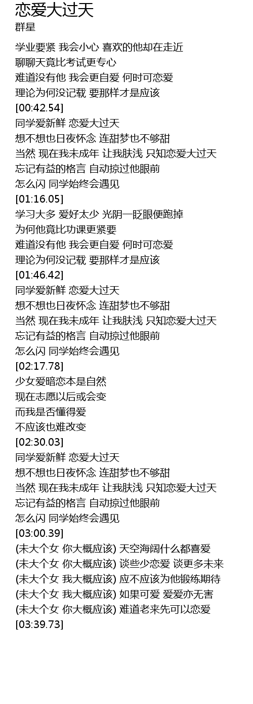 | [01:59.33] | 当然 现在我未成年 让我肤浅 只知恋爱大过天 |