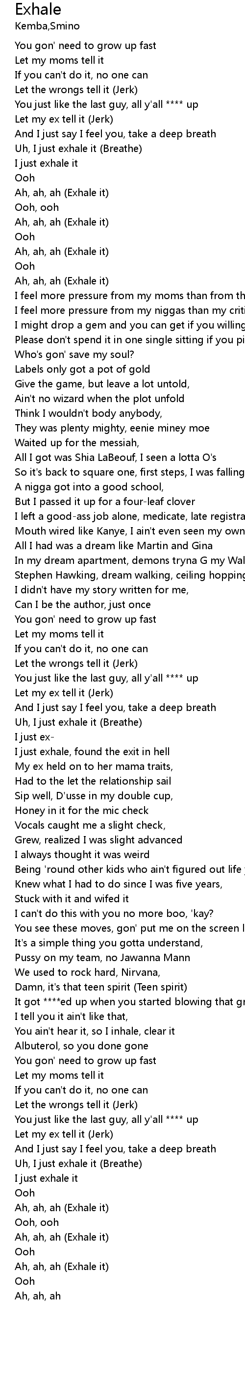 | [03:40.72] | Uh, I just exhale it (Breathe) |