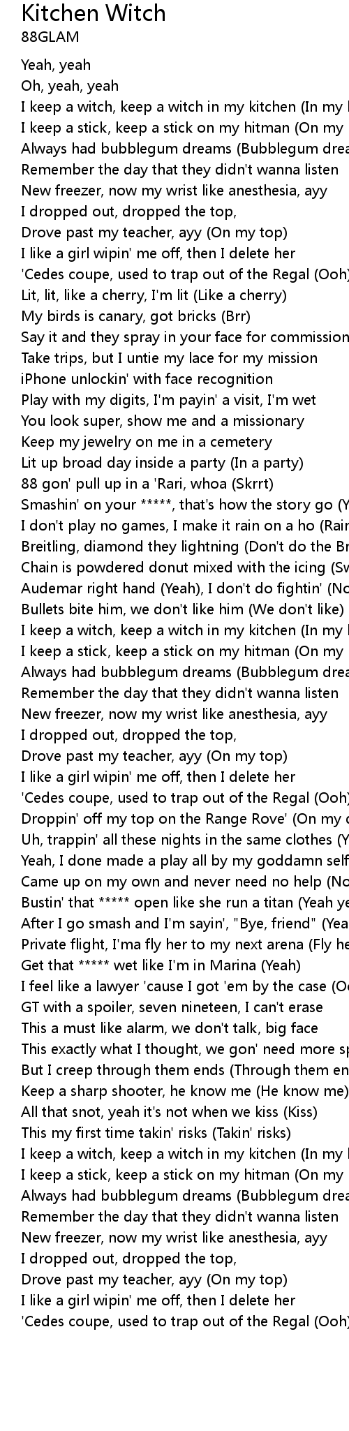 | [00:06.12] | I keep a witch, keep a witch in my kitchen (In my kitchen) |