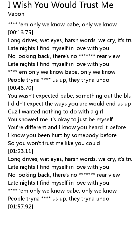 Long drives, wet eyes, harsh words, we cry, it's true |
