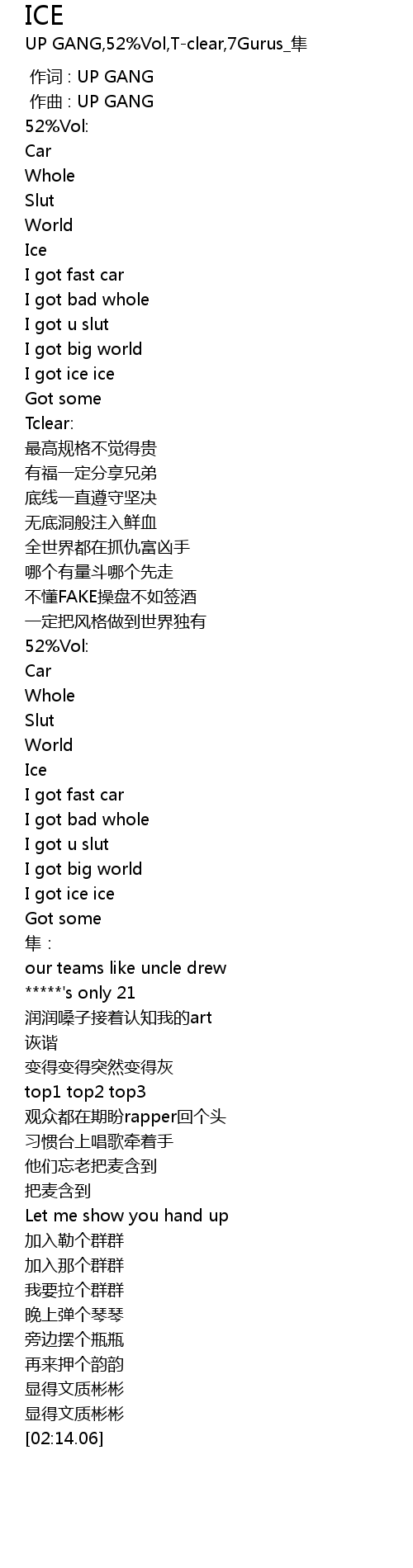 | [00:01.000] | 作词 : UP GANG |
