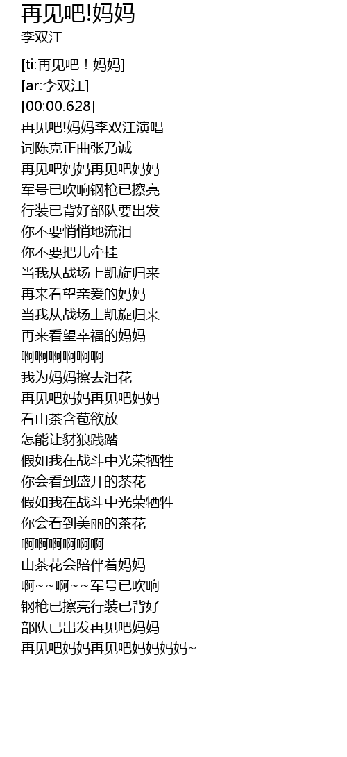 | [00:04.548] | 再见吧!妈妈李双江演唱 |