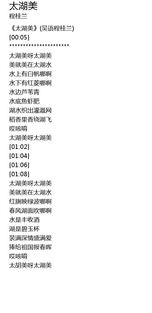 | [01:10] | 太湖美呀太湖美 |
