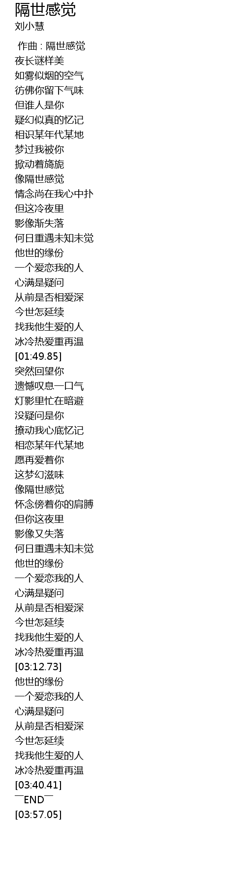 | [03:16.81] | 他世的缘份 |