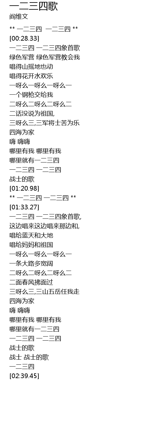 | [02:19.09] | 一二三四 一二三四 |