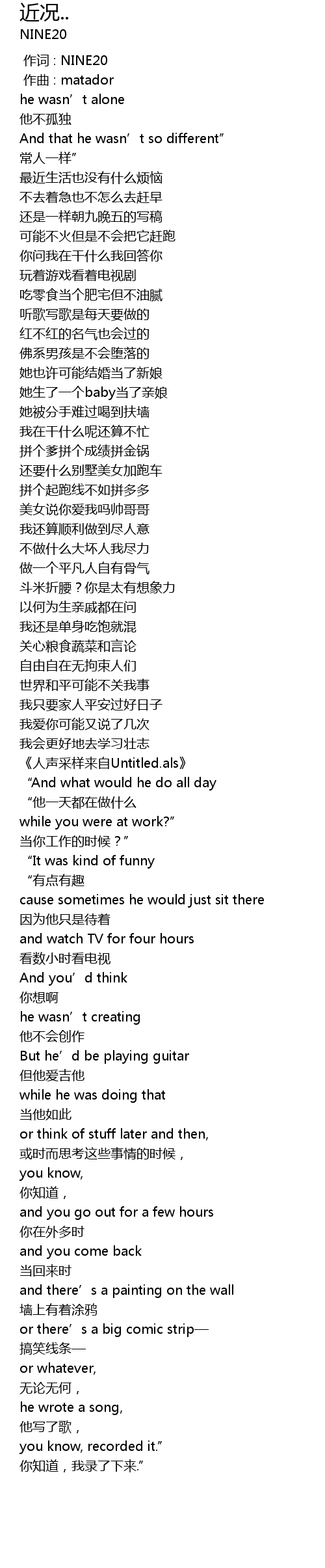 | [00:01.000] | 作词 : NINE20 |