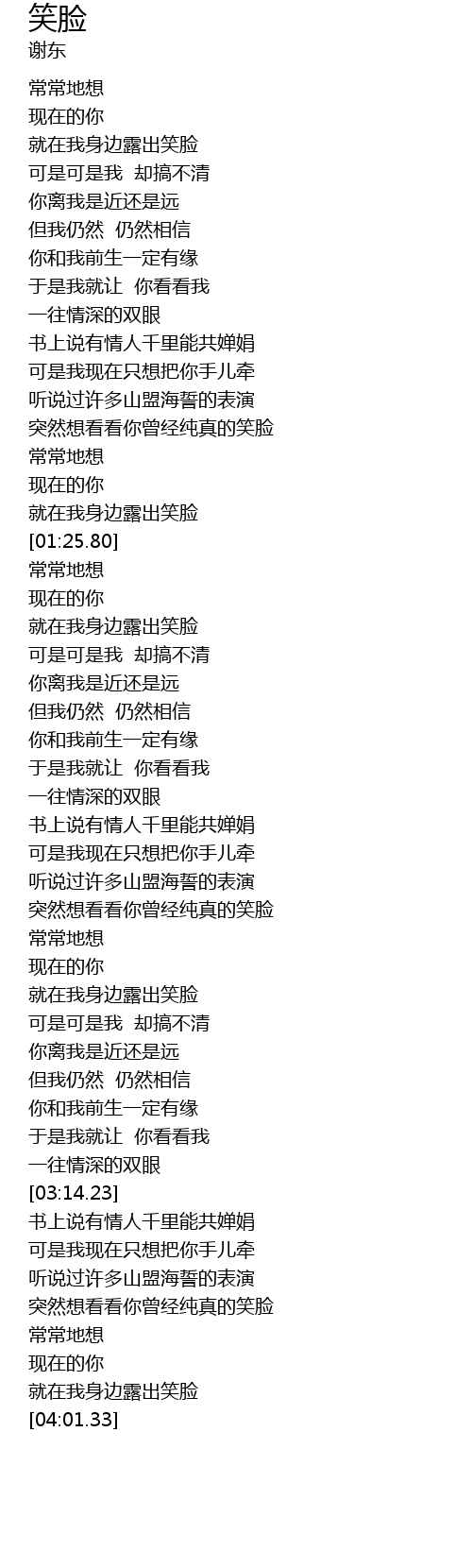 | [03:43.32] | 突然想看看你曾经纯真的笑脸 |