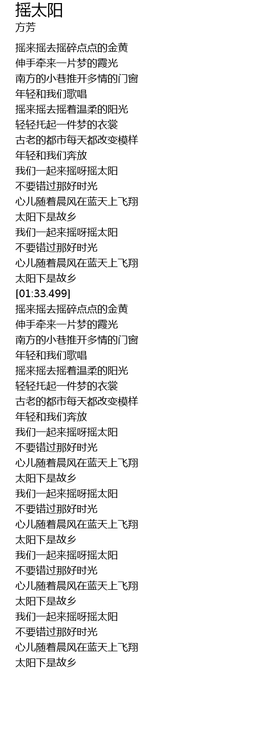 | [01:15.039] | 我们一起来摇呀摇太阳 |