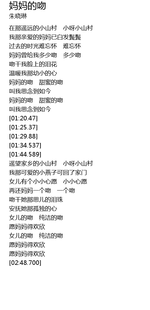 | [02:12.300] | 再还妈妈一个吻 一个吻 |