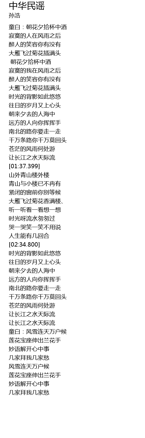 | [00:37.598] | dà yàn fēi guò jú huā chā mǎn tóu |