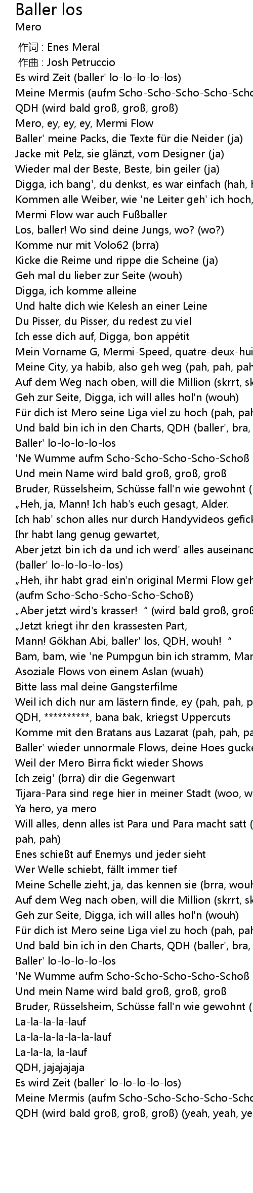 | [01:58.88] | Für dich ist Mero seine Liga viel zu hoch (pah, pah) |