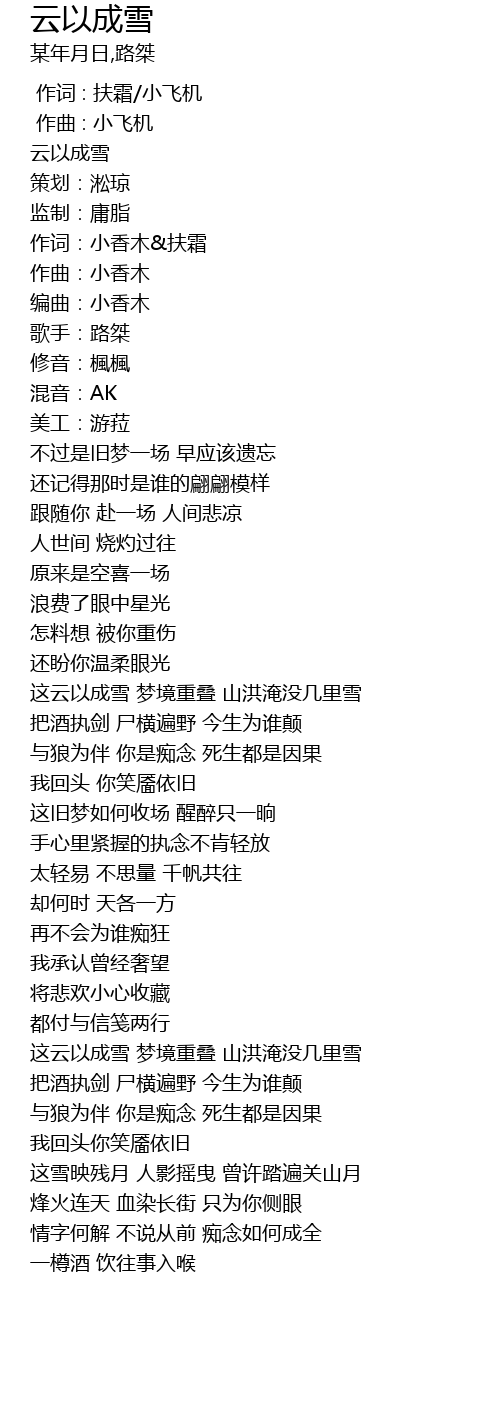 | [01:03.05] | 这云以成雪 梦境重叠 山洪淹没几里雪 |