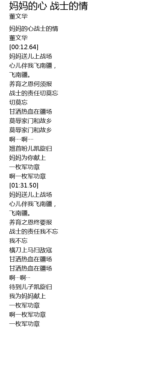 | [00:01.34] | 妈妈的心战士的情 |