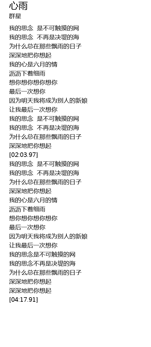 | [00:40.17] | 为什么总在那些飘雨的日子 |