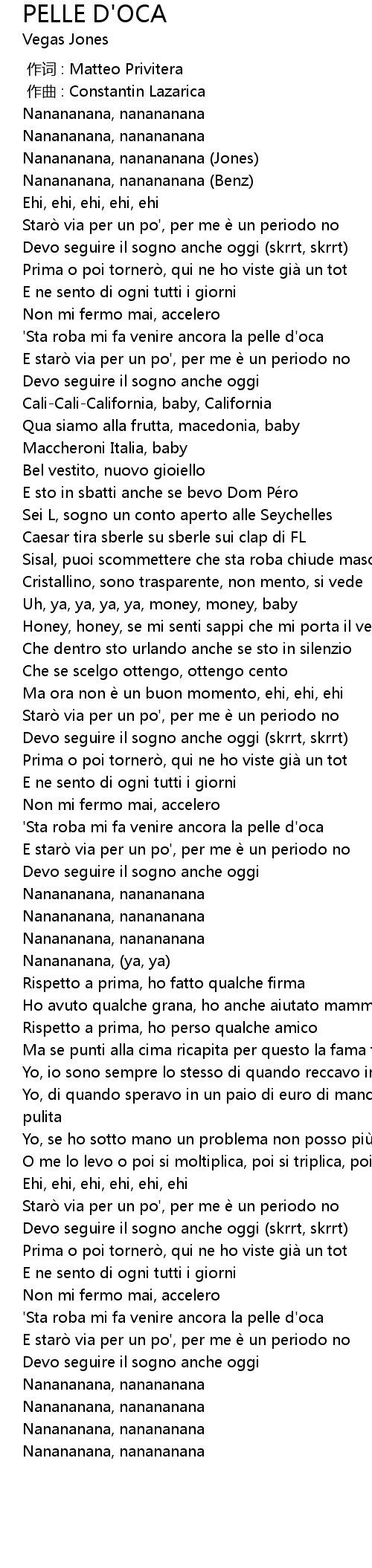 | Song | PELLE D'OCA |