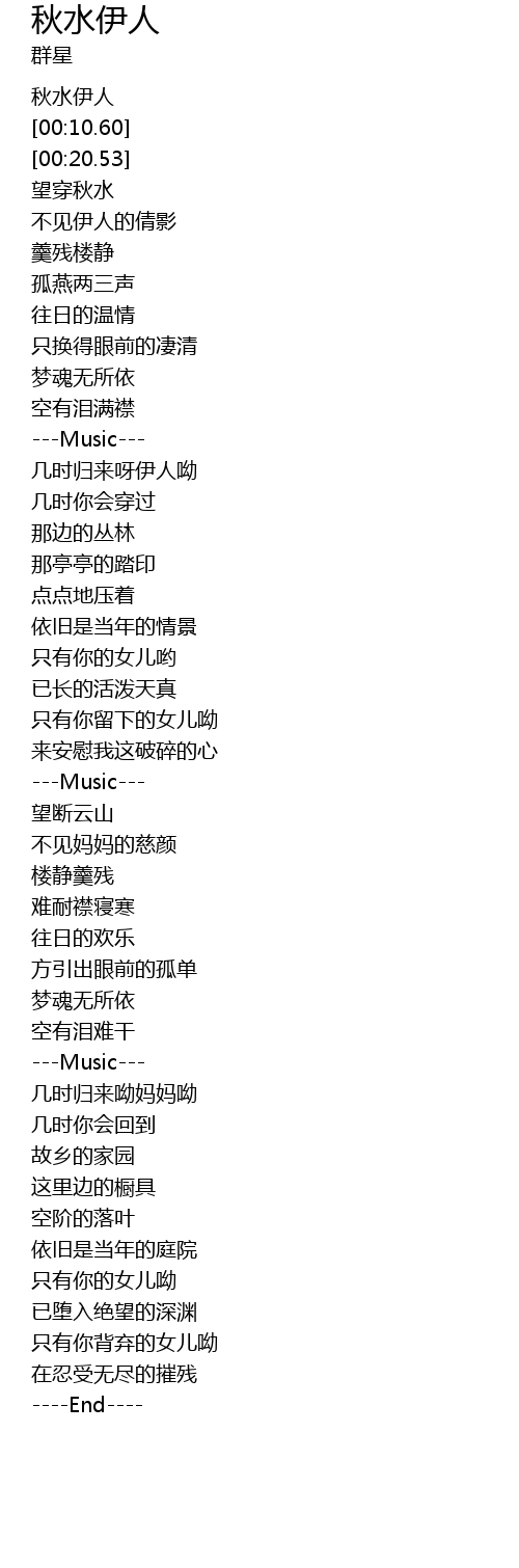 | [00:39.22] | wàng chuān qiū shuǐ |