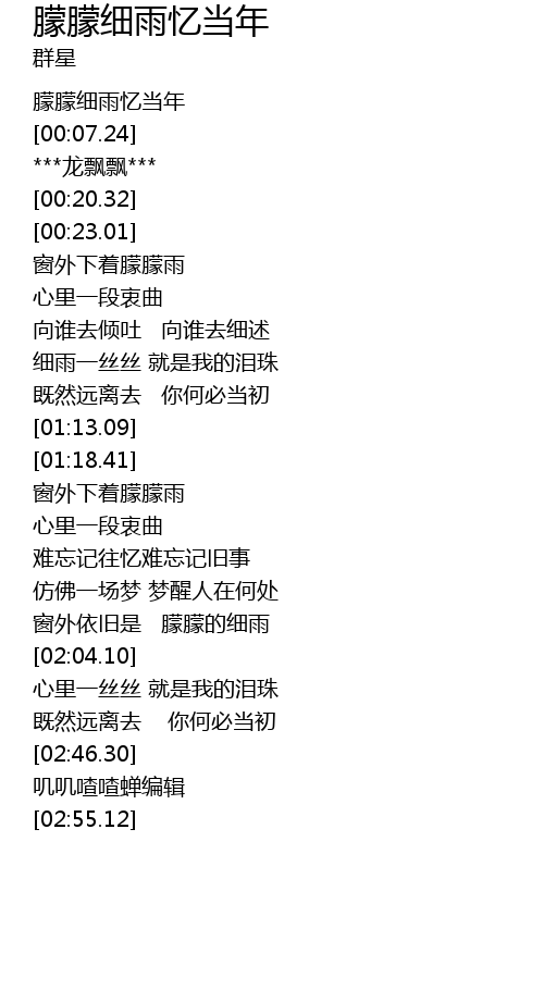 | [00:50.73] | 细雨一丝丝 就是我的泪珠 |