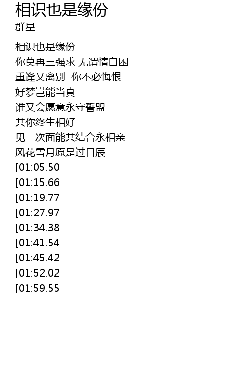 | [02:22.16][01:15.66] | 分手也是缘份 |