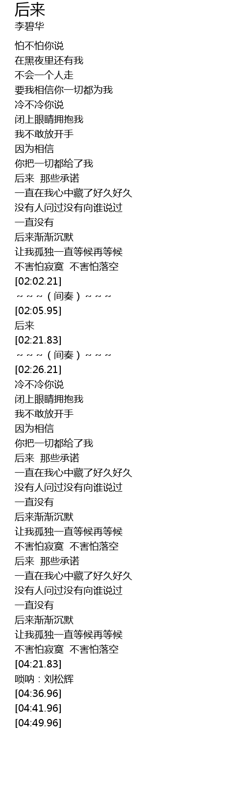 | [04:03.51] | 让我孤独一直等候再等候 |